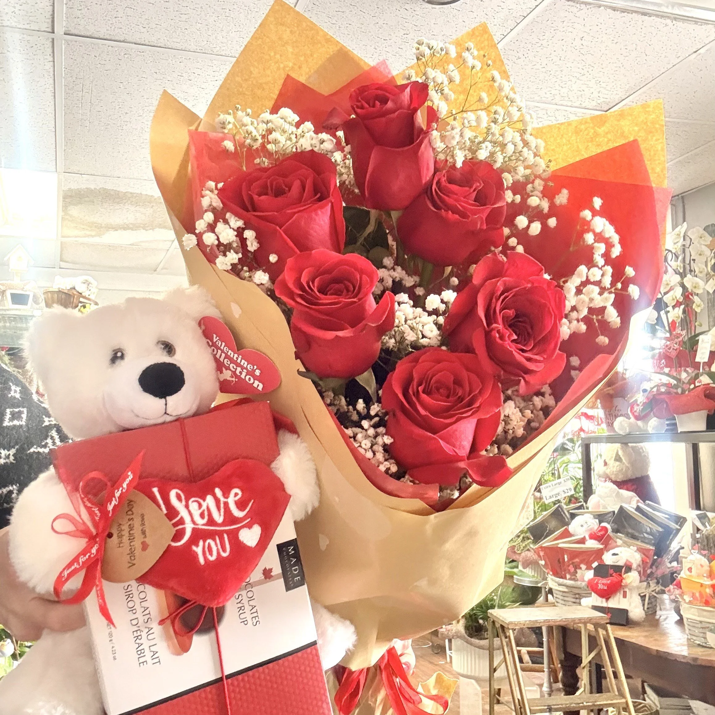 Be Mine- 1/2 Doz Roses, Bear & Chocolates